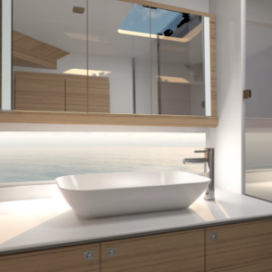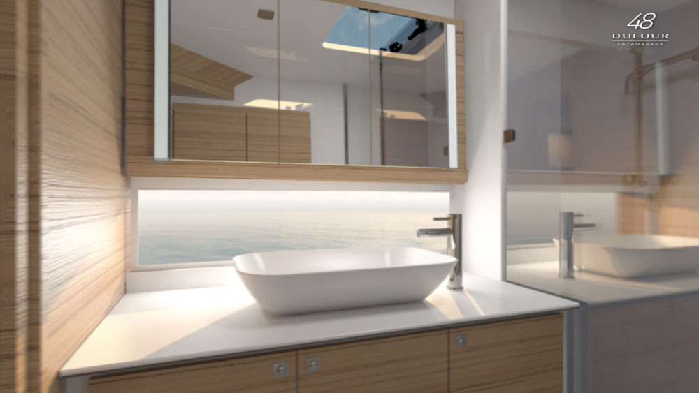 Catamaran Dufour 48 “ is a fully equipped and comfortable sailing catamaran, available for charter from Marina Kremik, Primošten. She has four double comfortable cabins with additional two single crew cabins in the bow. She can accommodate a maximum of 10 people. To ensure a pleasant sailing week in Croatia, at your disposal are lots of extra amenities such as Air condition, Generator, Heating, Sundeck, and cockpit cushions. Dishwasher, Microwave, Icemaker, Coffee machine make life on board, even more, to feel at home.